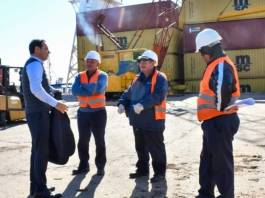 Valdés estuvo presente en la llegada de contenedores que exportarán madera a Europa