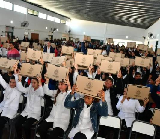 Valdés entregó notebooks a estudiantes de secundaria: “En 2024 todos contarán con una”