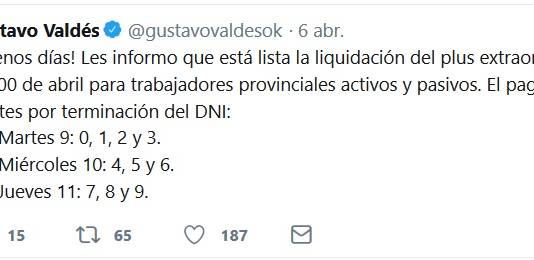 Valdés confirmó cronograma de pago del plus de $1000