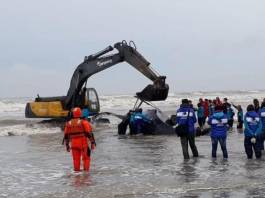 Intenso trabajo para rescatar una ballena encallada en Mar del Tuyú