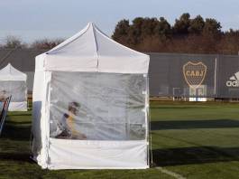 Barbijos y carpas sanitarias en el primer entrenamiento de Boca