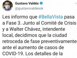 Por aumento de casos de Coronavirus, Bella Vista retrocede a Fase 3