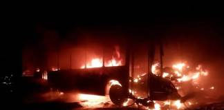 Voraz incendio en un galpón consumió tres colectivos de una empresa...