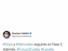 Goya y Mercedes seguirán en Fase 2, otras cuatro localidades permanecen en Fase 3 y La Cruz y Liebig vuelven a Fase 5