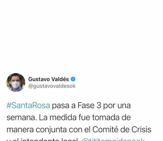 Santa Rosa pasa a Fase 3 por brote de Covid-19