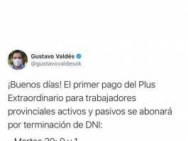 Valdés anunció el primer pago del Plus Extraordinario