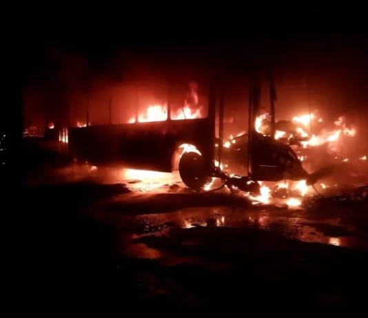 Voraz incendio en un galpón consumió tres colectivos de una empresa de transporte urbano