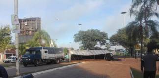 Camión volcó 29 toneladas de maíz en la bajada del Puente