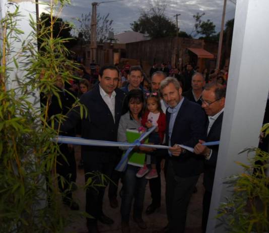 Valdés con Frigerio recorrieron barrios, entregaron viviendas y firmaron convenios para construir escuelas
