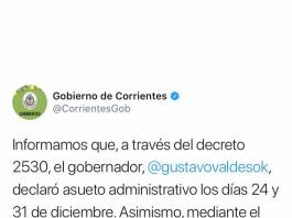 El gobernador comunicó por medio de las redes sociales oficiales el asueto por las fiestas y feria de verano