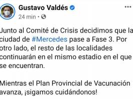 Coronavirus: Valdés comunicó que Mercedes pasa a fase 3