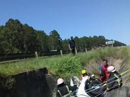 Quedo 18 horas atrapado en una alcantarilla tras volcar con su camioneta