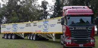 Camión volcó 29 toneladas de maíz en la bajada del Puente
