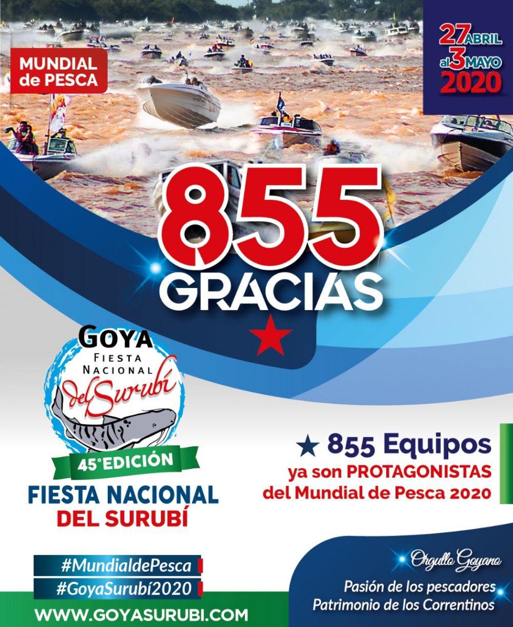 El Concurso Nacional de Pesca del Surubí ya cuenta, en sus primeros pasos organizativos y de promoción, con 855 equipos inscriptos, quienes ingresaron en la primer etapa promocional que culminó el 13 de enero último. Desde COMUPE expresaron la sorpresa por la marca registrada. “El apoyo de los pescadores es increíble. Solo nos restan palabras de agradecimiento a ellos, a cada una de las barras pesqueras locales y foráneas, a cada pescador, que con su entusiasmo, impulsa a otros para que se unan a nuestra fiesta”.