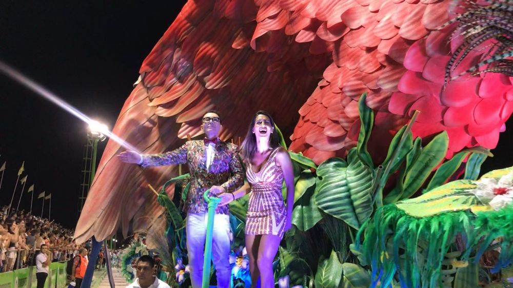 “Teníamos muchas ganas de estar acá”, confesó el periodista de espectáculos, reconociendo “que fue toda una responsabilidad desfilar con Sapucay, ya que es la última ganadora”.