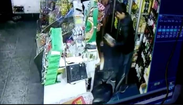 El robo quedó registrado por la cámara de seguridad y quien atendía el kiosco al momento del asalto lo difundió en las redes sociales.