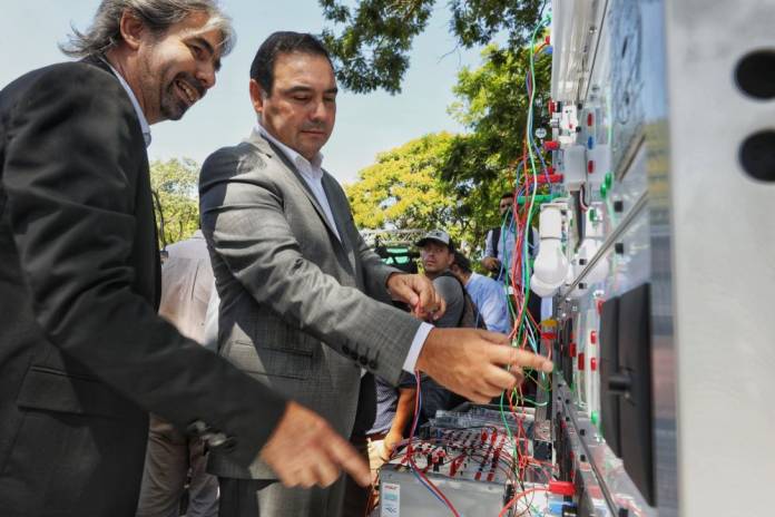 Durante el acto, en la avenida costanera General San Martín y Tomás Edison, la Provincia entregó tractores, tableros, dispositivos eléctricos y subsidios por un millón de pesos a escuelas técnicas industriales y EFA de la provincia, en el marco de la inauguración del ATM “Gastronomía”, emplazado en el paseo costero.