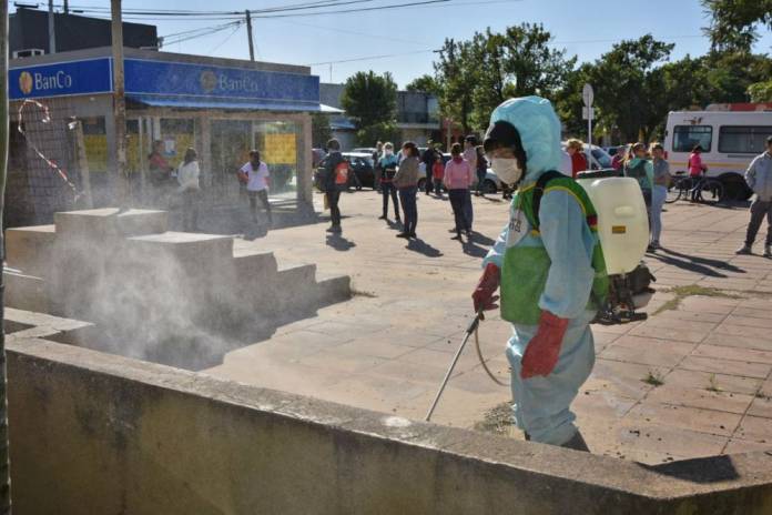“Estamos en varios lugares. Junto a equipos de la Provincia, seguimos trabajando en fumigaciones, más equipos de limpieza y desinfección como éste, con los que estamos en diferentes puntos”, dijo Tassano.