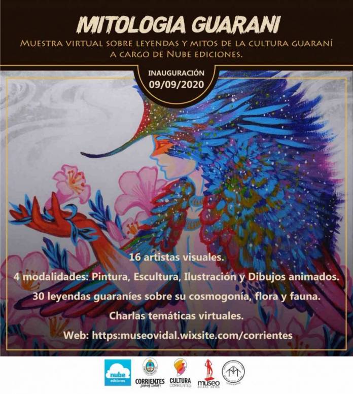 El Instituto de Cultura de la Provincia y el Museo de Bellas Artes “Dr. Juan R. Vidal” junto a Nube Ediciones presentan la muestra virtual MITOLOGIA GUARANÍ que reúne un conjunto de ilustraciones, esculturas, pinturas y animación realizadas por un grupo de diecisiete artistas visuales. Esta exposición quedará habilitada este miércoles 9 de septiembre, a partir de las 19, en la página web del Museo: www.museovidal.wixsite.com/corrientes
