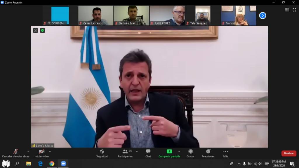 El presidente de la Cámara de Diputados de la Nación y principal referente del Frente Renovador (FR), Sergio Massa mantuvo un encuentro online en la tarde de este lunes con legisladores nacionales, intendentes y vice del Frente de Todos (FdT) de la provincia de Corrientes. En la comunicación mediante la plataforma Zoom que duró más de una hora, Massa junto a todos los participantes realizaron un análisis de la situación política actual, tanto nacional como provincial.