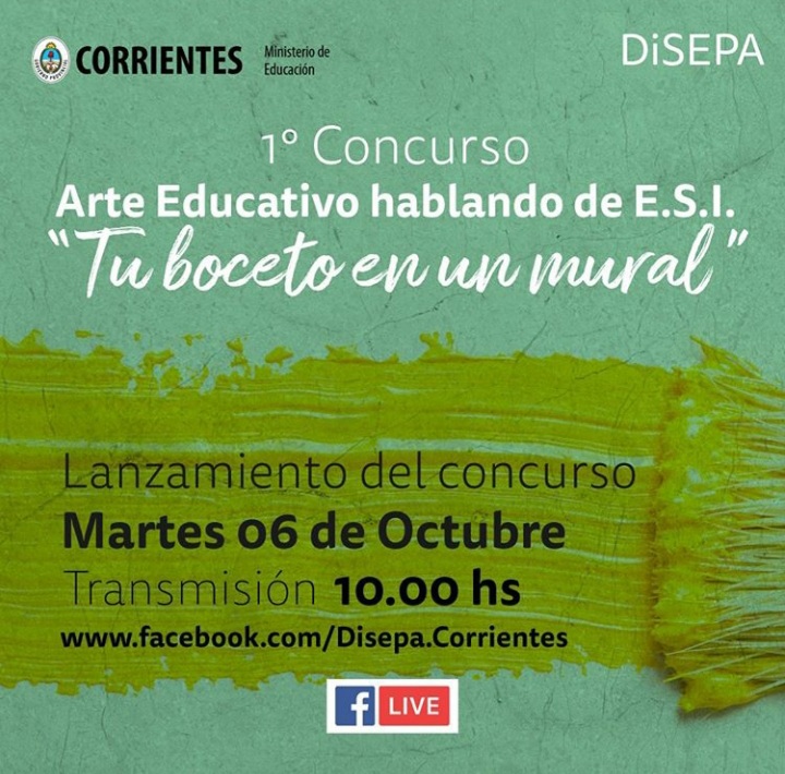 La Dirección de Servicios Educativos de Prevención y Apoyo (DiSEPA), del Ministerio de Educación realizará el lanzamiento del I Concurso de Arte Educativa “Hablando de ESI”, que se realizará el día martes 6 de octubre a las 10 horas en la Sala de Situaciones del Ministerio de Educación.
