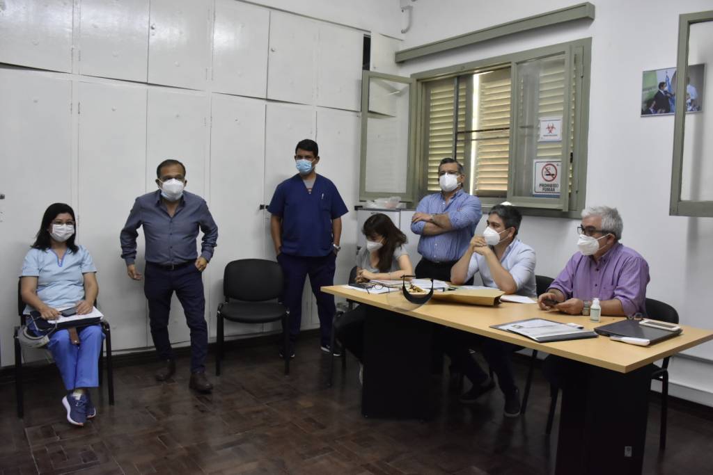 El ministro de Salud Pública de la Provincia, Ricardo Cardozo, visitó hoy el Hospital de Campaña Escuela Hogar, fundamentalmente para interiorizarse del estado de un médico internado en esa institución con covid-19. Además, participó de una reunión de trabajo con autoridades del centro creado exclusivamente por la pandemia del nuevo Coronavirus.