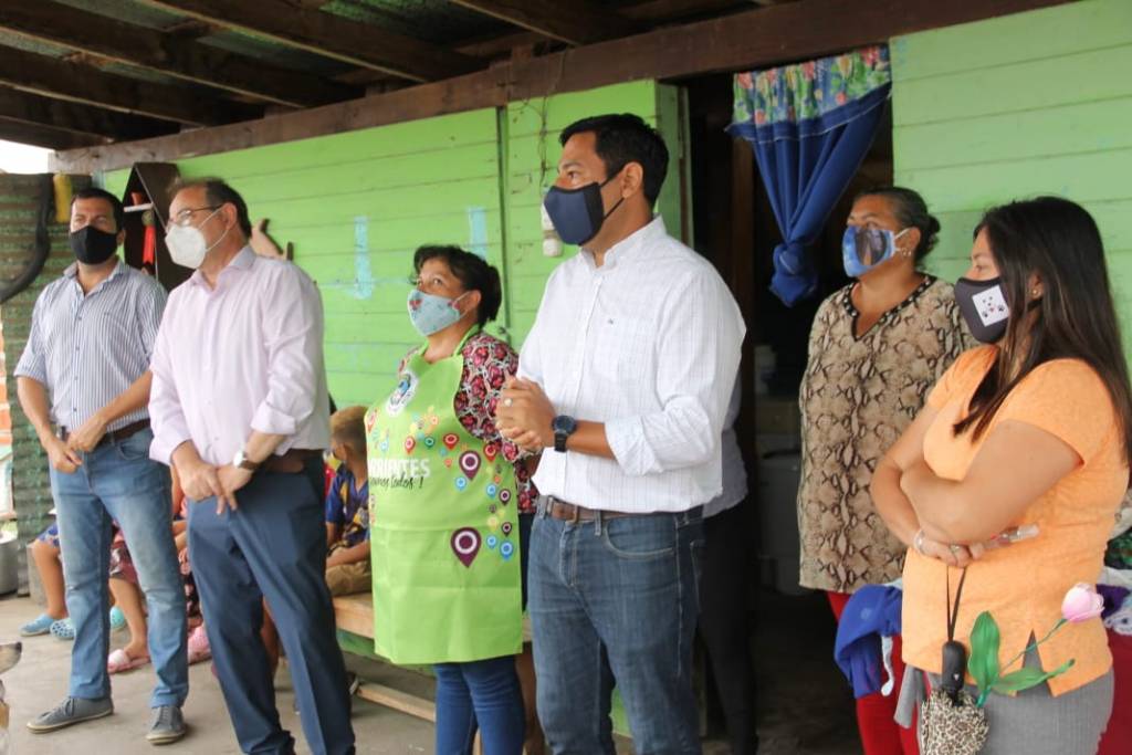 El Intendente Dr. Eduardo Tassano , funcionarios Municipales y en representación del ministerio el Director de Seguridad Alimentaria Dr. Lucas Carballo visitaron el comedor “Rosa Mística” del barrio La Olla, mientras se desarrollaba la entrega del almuerzo a través del sistema de vianderos siendo el menú del día una riquísima polenta con tuco.