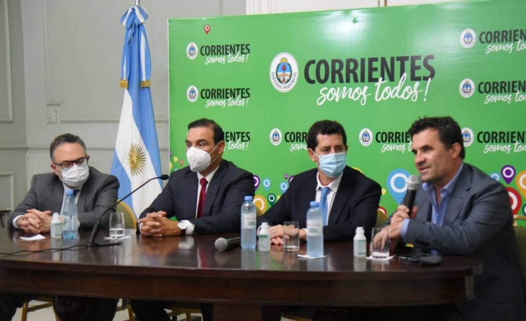 Los ministros Eduardo de Pedro (Interior) y Matías Kulfas (Desarrollo Productivo) y el secretario de Energía, Darío Martínez, de Nación, dieron este miércoles una conferencia de prensa en Casa de Gobierno junto al gobernador Gustavo Valdés, en la que anunciaron un desembolso de 100 millones de pesos para dos parques industriales en Corrientes. Y señalaron que coordinaron con el mandatario provincial esta medida que busca potenciar particularmente a las pymes, reconociendo que “el Norte argentino tiene que tener una infraestructura competitiva”.