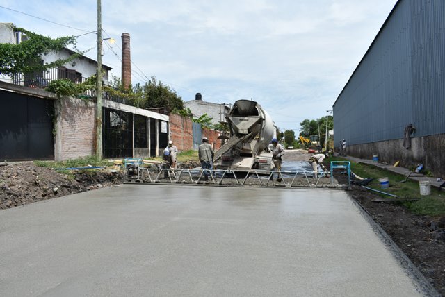 Cabe destacar que la obra se encara por administración con personal, equipos y elaboración propia de hormigón, hecho que sustancialmente abarata los costos de esta pavimentación urbana.