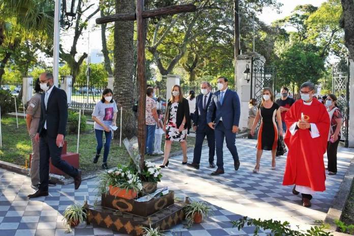 “En el Día de la Santísima Cruz de los Milagros, símbolo de la profunda fe de los correntinos, junto al intendente de la Capital, Eduardo Tassano, participamos de la misa celebratoria presidida por monseñor Andrés Stanovnik”, indicó Valdés en su cuenta de twitter, al referirse a la importancia de la conmemoración religiosa.