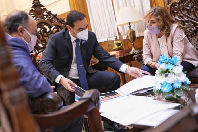 Gustavo Valdés recibió este lunes, en su despacho, a la titular de la Universidad Nacional del Nordeste, Delfina Veiravé. En la oportunidad, ambos abordaron un proyecto para completar la infraestructura del Parque Tecnológico que se está construyendo en el Campus Deodoro Roca, y está relacionado con el cerramiento de la planta baja del edificio, que se encuentra en un 90% de avance.