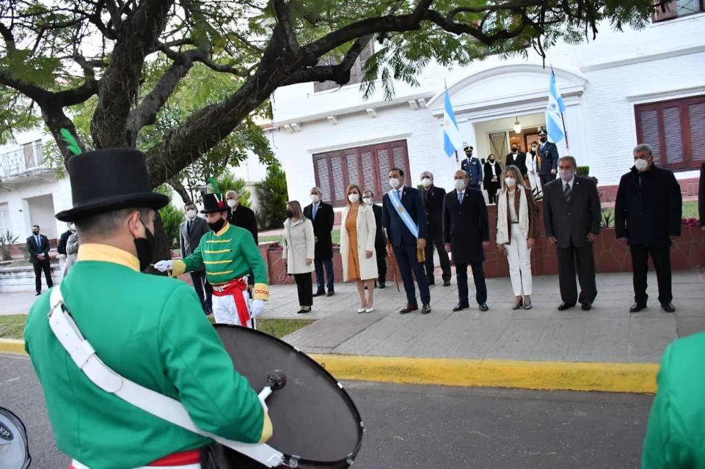 El mandatario provincial Gustavo Valdés, acompañado por el vicegobernador Gustavo Canteros y los ministros del Poder Ejecutivo , recibieron frente a la residencia oficial del jefe del Gobierno a la Banda de Música de la Policía de la Provincia, quienes ataviados con el uniforme del ilustre cuerpo de Cazados Correntinos, arribaron marchando por la Costanera General San Martín, tras el saludo protocolar del jefe de tropa al Gobernador, tras el Toque de Diana ejecutaron la marcha San Lorenzo, para luego reiterar el saludo y retirarse. Con este emotivo evento que se repite año a año, se dio inicio a la celebración del 25 de Mayo, en un marco de preocupación de gobernantes y pueblo por la Pandemia del Coronavirus, pero también con la fortaleza del espíritu Patrio para recordar una fecha emblemática de la argentinidad.