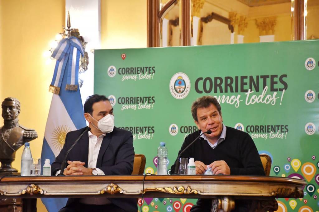 Luego, ambos se trasladaron al Salón Amarillo de Casa de Gobierno, lugar donde se desarrolló una conferencia de prensa, en la cual Valdés tomó la palabra para ofrecerle a Manes una “cálida bienvenida” en nombre del Gobierno Provincial, destacando que es “un lujo tenerlo en Corrientes”.