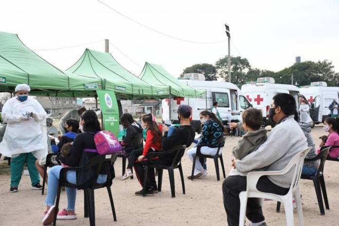 La intervención sanitaria se desplegó sobre la cancha central de la populosa barriada del Quilmes, con la presencia del ministro de la cartera, Ricardo Cardozo; funcionarios de su gabinete, más el acompañamiento del viceintendente de Capital, Emilio Lanari, junto a un equipo de salud, que se encontraba inmunizando en el lugar.