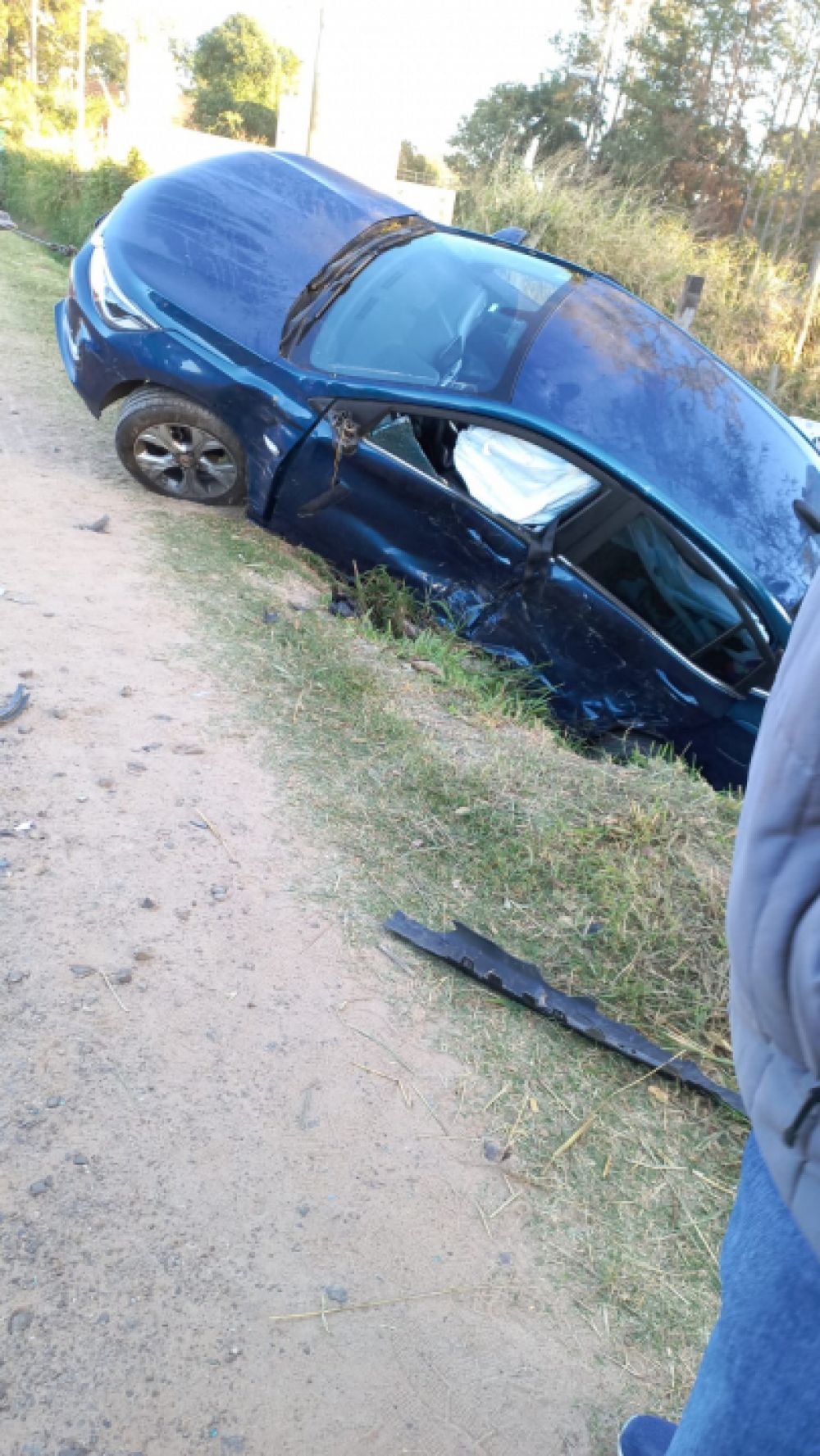 Muy próximo al acceso al Golf Club Corrientes, chocaron de manera frontal Peugeot 207 que circulaba por ruta 43 y un Chévrolet Onix que salía de la zona de Laguna Soto y que terminó tumbado en un zanjon.