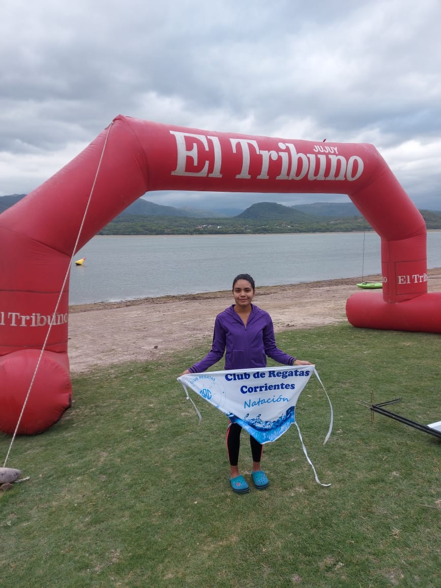 La nadadora y representante del club de Regatas Corrientes, Ayelén Cuevas, sumó un nuevo éxito en el marco del Circuito NOA de Aguas Abiertas. Esta vez se impuso en la segunda fecha, disputada en el dique La Ciénaga en Jujuy, con un tiempo 2h 09′ 45″ para recorrer los 7,5km de la prueba, lo que la ubicó en lo más alto del podio de su categoría y con el tercer lugar en la clasificación general.