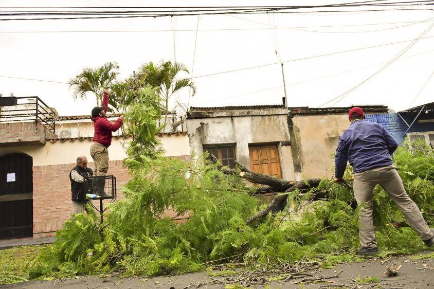 Debido a las precipitaciones registradas durante la madrugada de este miércoles, que estuvieron acompañadas de fuertes ráfagas, tanto en Capital como en unas 30 localidades del interior sufrieron las consecuencias y que se tradujeron en árboles y postes caídos, los que provocaron el desprendimiento del tendido energético.