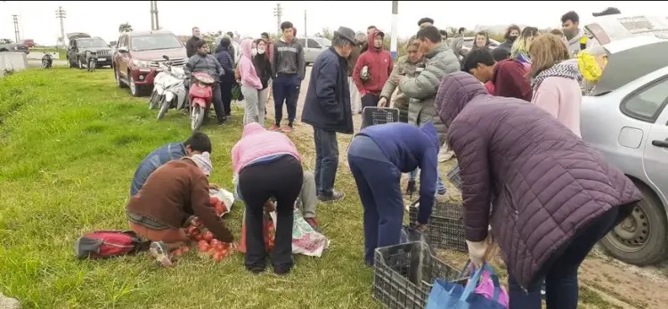 Los horticultores llevaron a la rotonda de acceso de la segunda ciudad de la provincia cajones que eran vendidos a bajo precio. Les pagaban 50 pesos el cajón, casi regalado. Ante esta situación, la población no se hizo esperar y accedieron a pagar hasta 500 pesos el cajón para que no se pierda la mercadería. Y de esta manera los productores recuperaban algo de lo perdido, con la inversión del costo de la producción antes de que se funda la fruta.