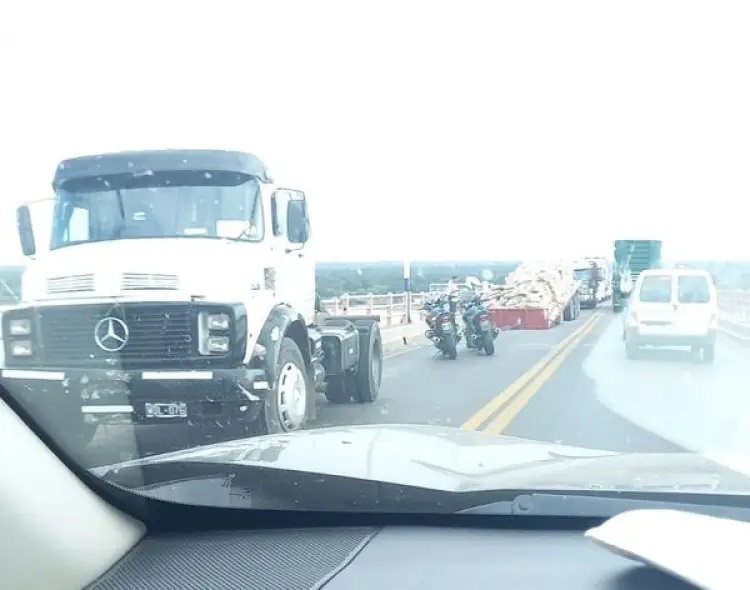 El puente interprovincial General Manuel Belgrano volvió exponer la grandes falencias en materia de circulación vehicular entre las áreas metropolitanas de las provincias de Corrientes y Chaco. Ayer a media mañana, el quebranto para miles de usuarios lo generó el acoplado de un camión cargado de bolsas de cemento, el cual se desprendió de la cabina en el momento en que el rodado avanzaba por la parte más empinada. Por suerte el automóvil que venía detrás se desplazaba a una velocidad y distancia prudente, que le permitieron a su chofer frenar y no impactar contra el bólido. Empero de inmediato se generó en el carril que va de esta Capital a Resistencia una fila de vehículos, aunque algunos osados para continuar su camino cruzaban a la otra mano del viaducto para sobrepasar a los que se quedaron, no obstante la llegada a los pocos minutos de personal motorizado de la Gendarmería Nacional así como de la Policía de Corrientes, ya que el embotellamiento se produjo en el lado correspondiente a esta provincia. Numerarios de ambas fuerzas de seguridad junto con empleados de la empresa encargada del mantenimiento del Puente y del cobro del peaje, comenzaron las tareas de retiro del pesado cargamento mientras regulaban el paso de ambos lados mediante el carril no bloqueado, lo que descomprimió en parte la situación del lado correntino pero a la vez generó filas del lado chaqueño, aunque al estar alejado del área urbana sus consecuencias no fueron las mismas. Luego de más de dos horas, finalmente se recuperó en forma progresiva la normalidad.
