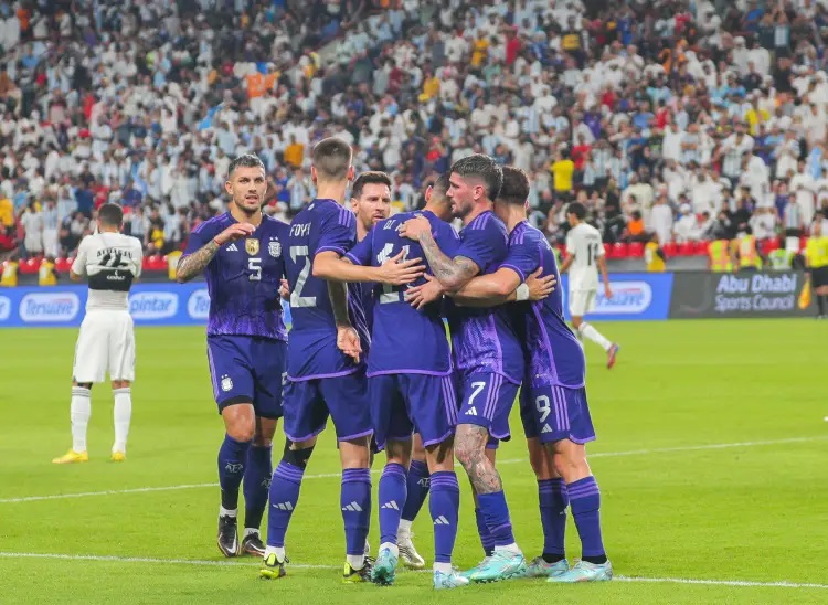 En la segunda parte, Joaquín Correa (14’) selló la goleada en el estadio Mohamed Bin Zayed de Abu Dhabi que vibró con la presencia del mejor jugador del mundo y de las estrellas de la “Albiceleste”.
