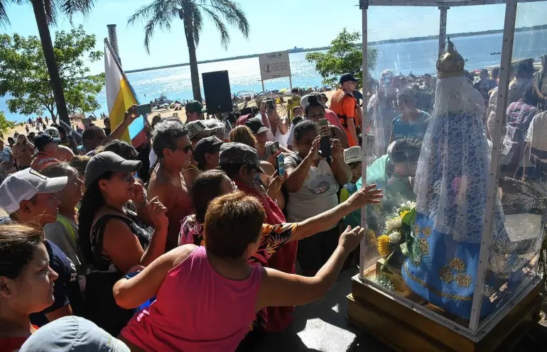 Después de una travesía de cinco días por diferentes localidades que rodean el Río Paraná la imagen de la Virgen de Nuestra Señora de Itatí llegó este domingo a la ciudad de Corrientes pasadas las 16. Luego del recibimiento de los fieles en la Playa Arazaty la imagen peregrinó por las calles de la Ciudad y finalmente desembocará en horas de la noche en el escenario Osvaldo Cordero de la 32° Fiesta Nacional del Chamamé.