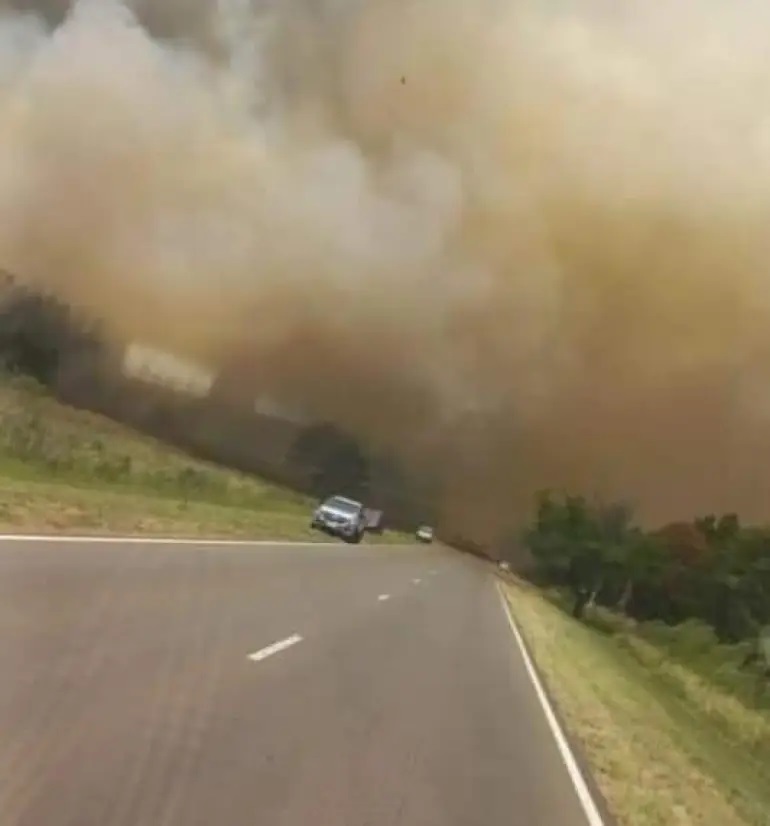 La densa columna de humo y el peligro de que el fuego avance sobre la ruta motivó a los efectivos a cortar durante un tiempo el tránsito. Dotaciones de Bomberos trabajaron para controlar el foco ígneo. Se desconocen las causas y el origen.