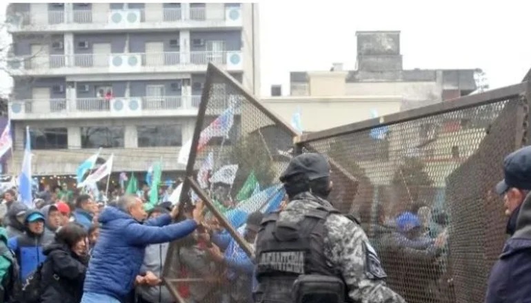 El avance policial se registró poco después de las 11 a unos 200 metros del parlamento provincial, donde el gobernador Gerardo Morales encabezaba la sesión y se disponían a jurar la reforma de la Carta Magna.