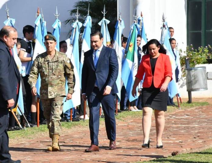 Para dar inicio al acto, el jefe de la Agrupación Libertador, teniente coronel Agustín Luzuriaga presentó a los efectivos formados al gobernador de la provincia Gustavo Valdés, quien pasó revista y saludó a la formación acompañado por el comandante de la Primera División de Ejército General de Brigada, Aldo Ferrari y la intendenta de Yapeyú, Marisol Fagúndez.