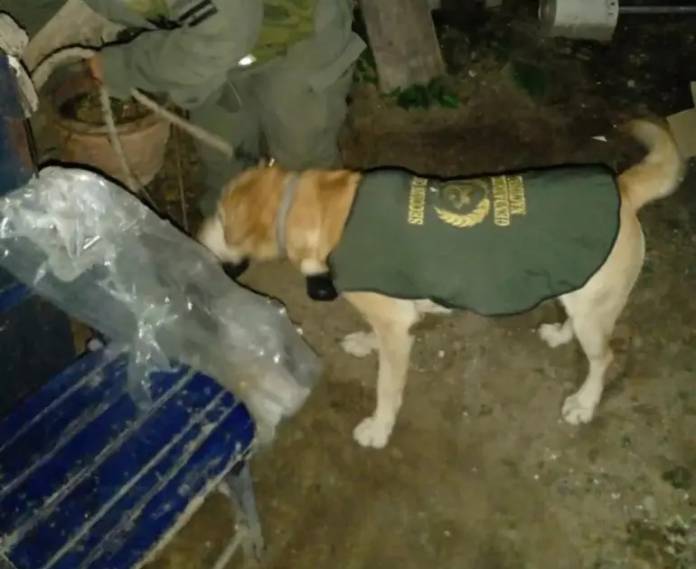 Anoche, los efectivos irrumpieron en la vivienda, dentro de la cual se presumía que se llevaban a cabo actividades de fraccionamiento y venta de estupefacientes. Una vez requisado el lugar, contando con el apoyo del can detector de narcóticos “Jota”, se procedió a la detención de un ciudadano masculino, mayor de edad. Dentro del inmueble se hallaron: una sustancia e color blanco, 84 envoltorios conteniendo una sustancia de similares características, 2 frascos que contenían una sustancia vegetal amarronada, un picador de marihuana, 3 teléfonos celulares, 1 motocicleta y $ 34.000 pesos argentinos.