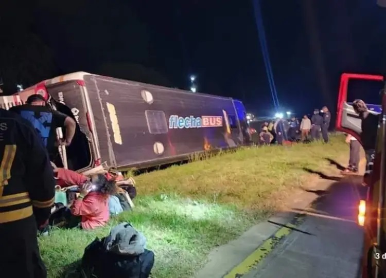 Se trataría de una unidad de la empresa Flecha Bus, que circulaba bajo una torrencial lluvia, situación que dificultaba el trabajo de los rescatistas. Había heridos de distinta consideración, que estaban siendo trasladados a Colón y San José.