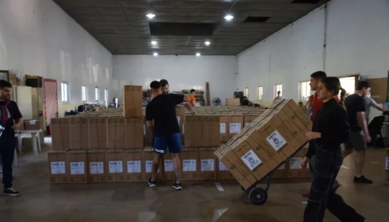 En el ex Regimiento 9 se avanza con toda la logística de las elecciones nacionales y municipales. El miércoles comienzan el despacho a las localidades del interior provincial y el sábado serán distribuidas en Capital.
