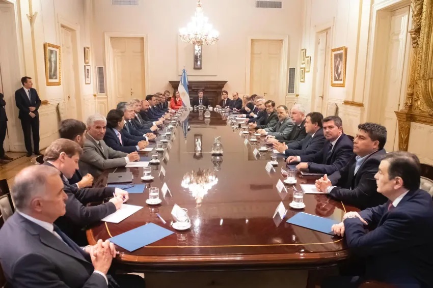 “Los gobernadores plantearon el problema del desfinanciamiento por la pérdida por (la baja del impuesto a las) Ganancias y el IVA y el Presidente se comprometió a resolverlo. Se va a revertir durante un año con relación al Presupuesto (septiembre a septiembre)”, indicaron fuentes de Presidencia tras el encuentro.