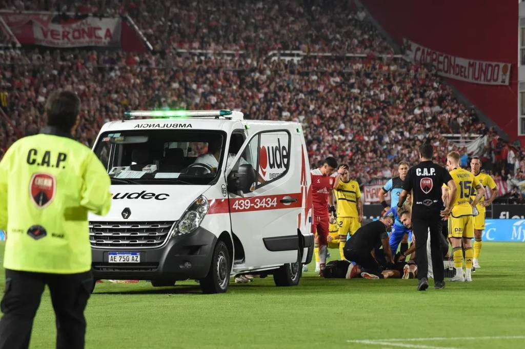 El futbolista chileno cayó imprevistamente, sin contacto alguno, al césped y eso derivó, aparentemente en un cuadro de convulsión, por lo que inmediatamente fue asistido por los cuerpo médicos de ambos clubes que buscaron compensarlo, para trasladarlo en ambulancia a los pocos minutos al Instituto Médico Platense.