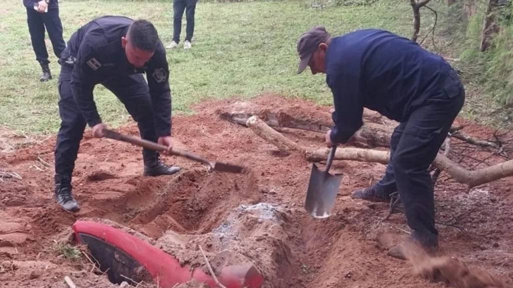 Dos hombres y una mujer fueron detenidos por un relato de película que inventaron. Hicieron pozos para enterrar el chasis y el motor.